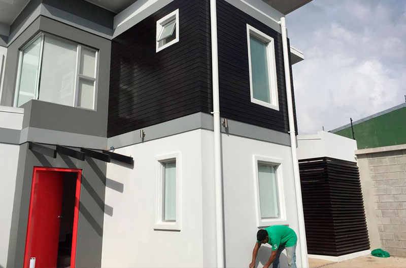 El diseño de la casa tiene tres grandes zonas, en el primer nivel encontramos dos, una social (Sala, comedor y terraza) y otra de servicio (Cocina, alacena y Cuarto de pilas) y en el segundo nivel el área privada de dormitorios.